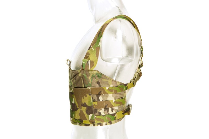 Designed as an ultralight fighting load - holding 4 M4 or similar sized magazines with 3 x 3 MOLLE fields on either side for mounting IFAKs, pistol mag pouches, utility pouches, or any other MOLLE compatible pouches.